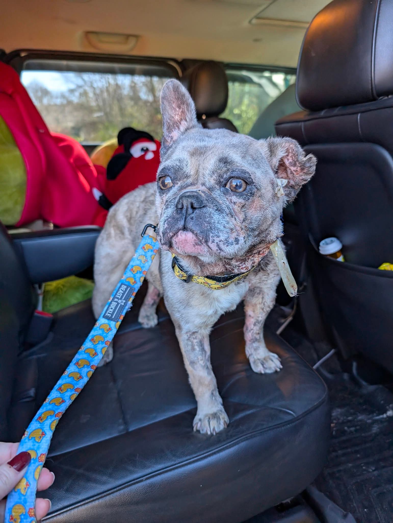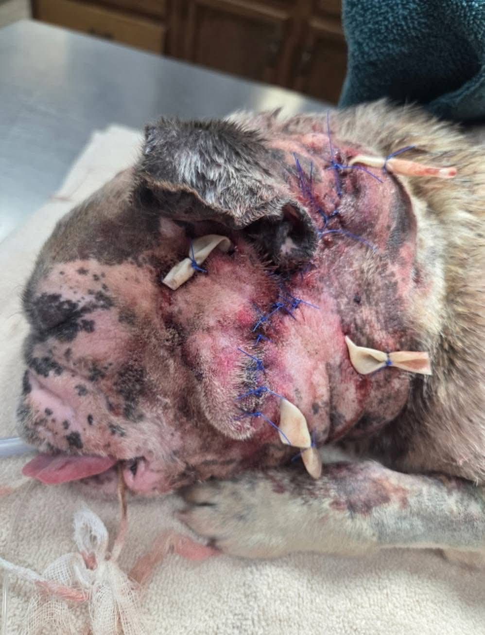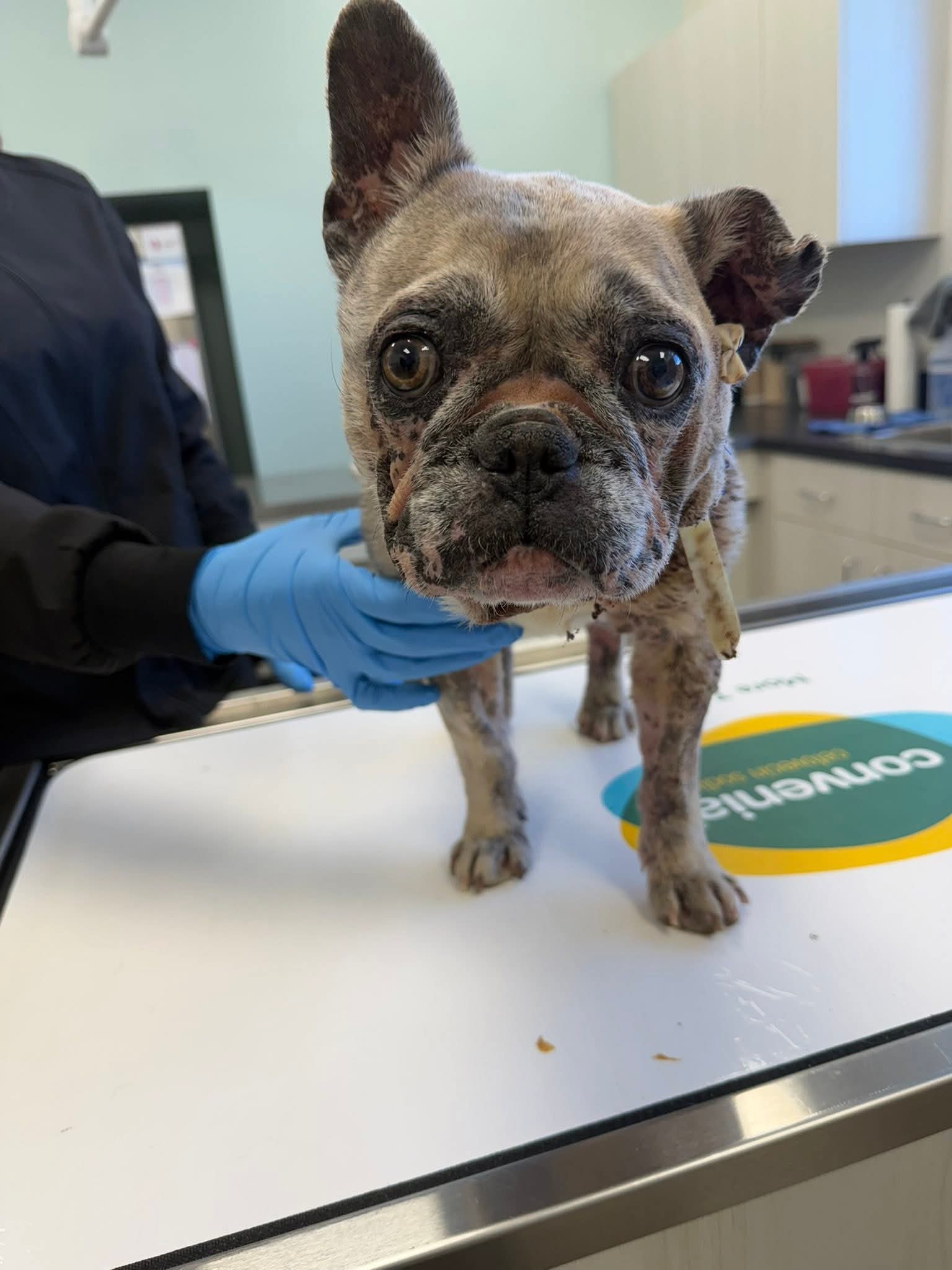 We saw Evie on a shelter page.. we immediately asked if we could have her. Rescues and shelters are recently having to use money more wisely and she would definitely require a lot... so me and Kristina Contreras wanted to hurry up and get her before someone else would've had to make that decision. We dont see $$$$ signs we see an animal that desperately needs our help and was done very wrong by humans. This was an untreated old bite injury that filled up with a gallon of infection. She was tossed out after she was bred over and over. But today she felt her first dose of love when Kristina picked her up at the vets. This is the mom of 7k frenchie puppies. You would think if someone had a cash cow and he didnt need to work because she was paying all the bills then she would be treated like a queen. If only... Help me Help these kids.