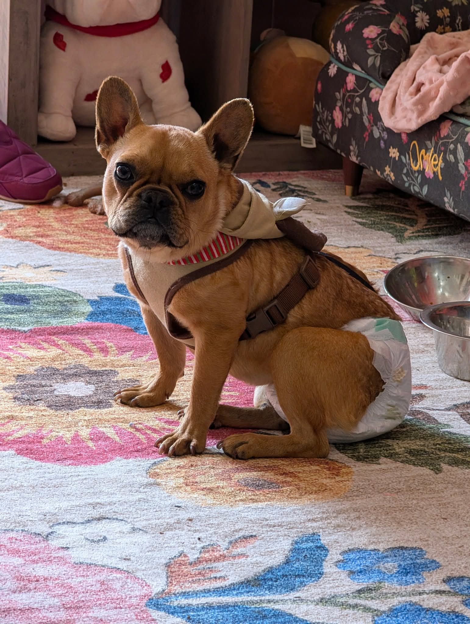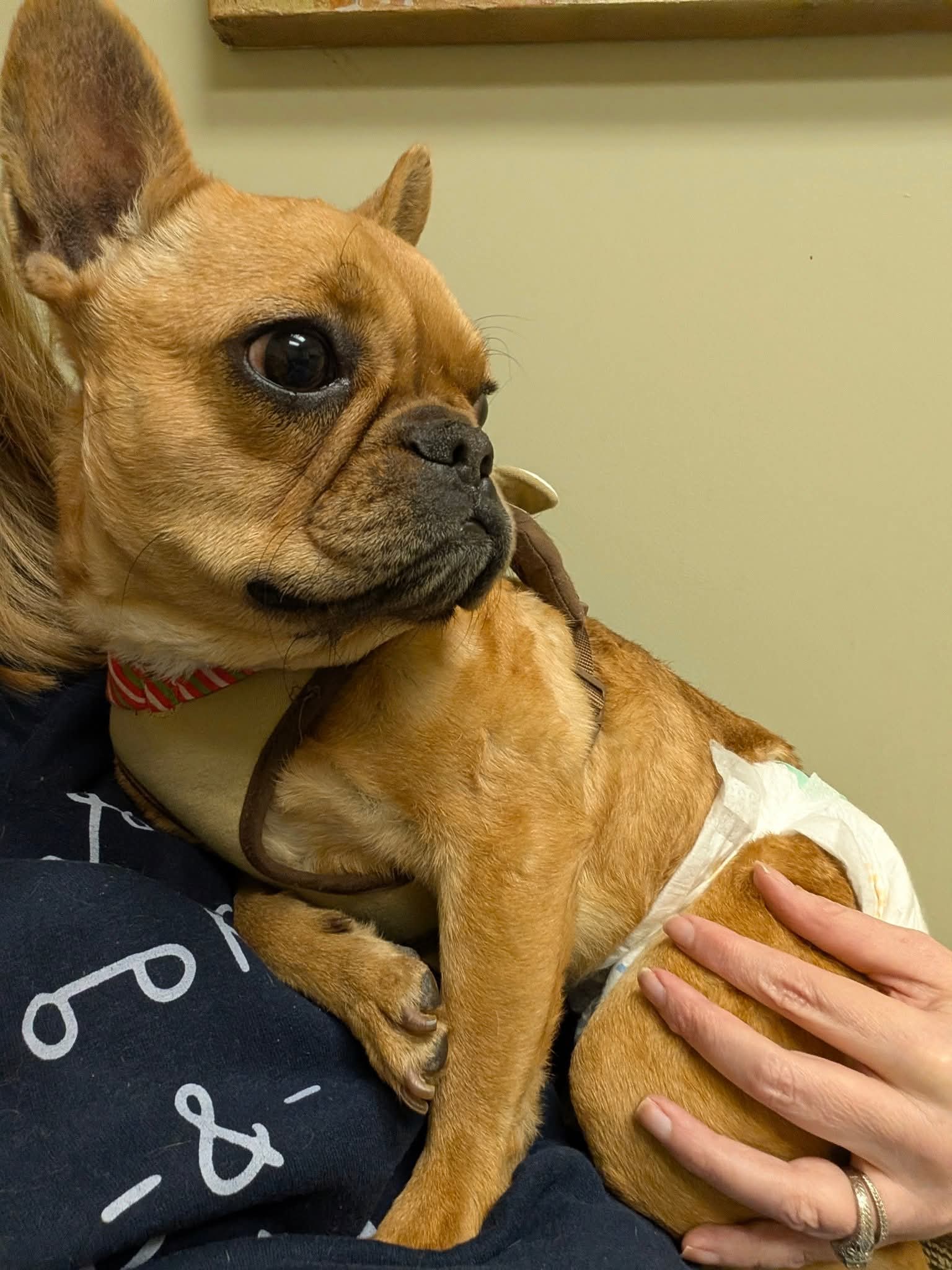 Meet Figgy Francis at just one year old she's been through it all. At just a few weeks old she had a rectal prolapse - we aren't sure the reason. Could be genetic since Frenchies are not being bred for health, in fact the opposite. Could be a mix factor of parasites. It's unclear. They did a purse string suture that didn't hold. The lady who purchased her then took her to her vet and at this point she had unhealthy tissue and needed a resection. This was all back in February. Those scars have healed but it seems she's still straining and leaking. As a result, the owner kept her in an outdoor kennel, albeit with a heater. But when we picked her up she was covered in dried poop and very scared. We scooped her right up got her home, cleaned her up, and it seems she wasn't feeling her best. Even with a heater the temps dropped to the 20s. We called the vet to see her and thankfully they said bring her in. She's on antibiotics for a slight upper respiratory infection. She's also got some muscle atrophy and a hunched spine. With meds on board to get her feeling better. We're going to do what we always do. Try to heal from the Gut! She's started a gently cooked diet, and CBD. We will then start FMT treatment. Where hopefully we can get her gut good strains of bacteria. She's a doll and has been handed a crap deck of cards. But she slept warm and clean last night. Yesterday's bill was 400.00 that includes her fecal and bloodwork. She'll have a follow up in 3 weeks. Please help our little Figs if you can. If you’d like to help us with Figgy’s fresh start and medical expenses, we would be so grateful. It allows us to take in others that need us.