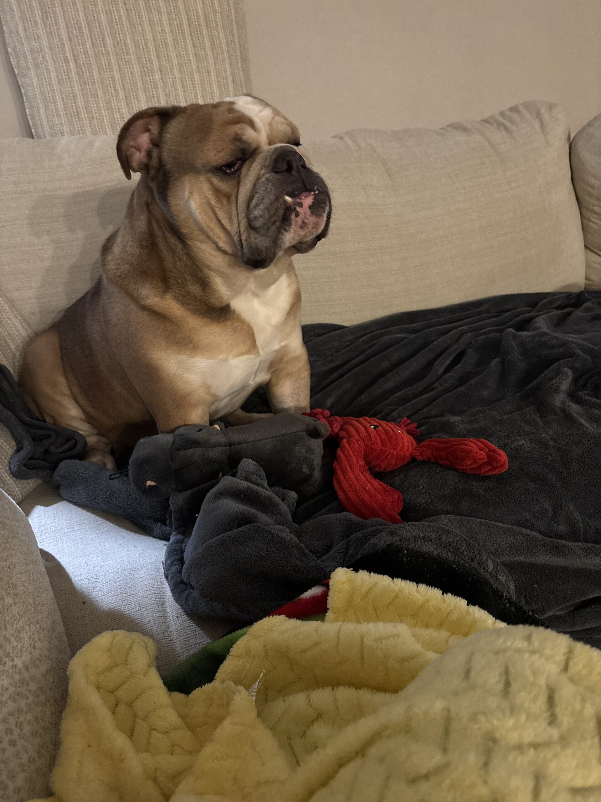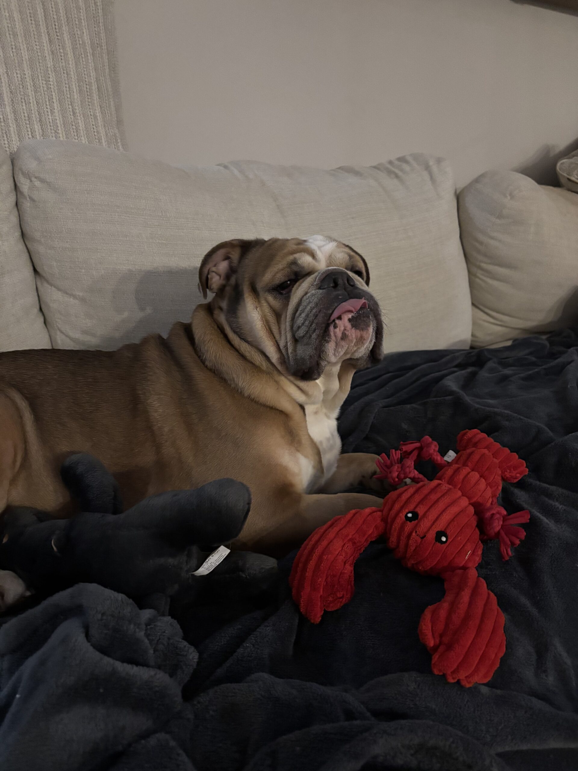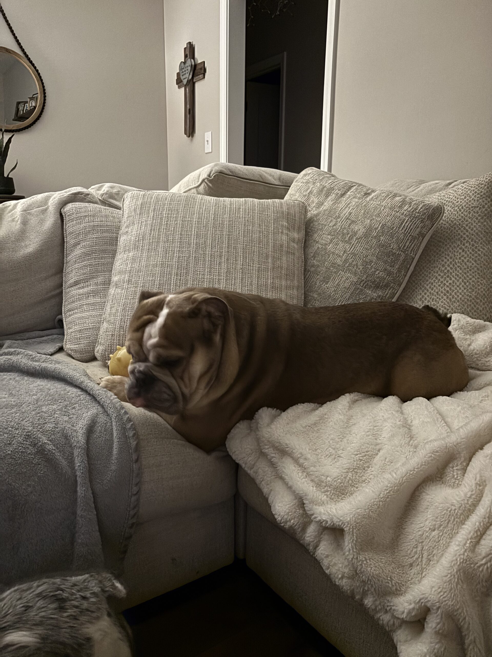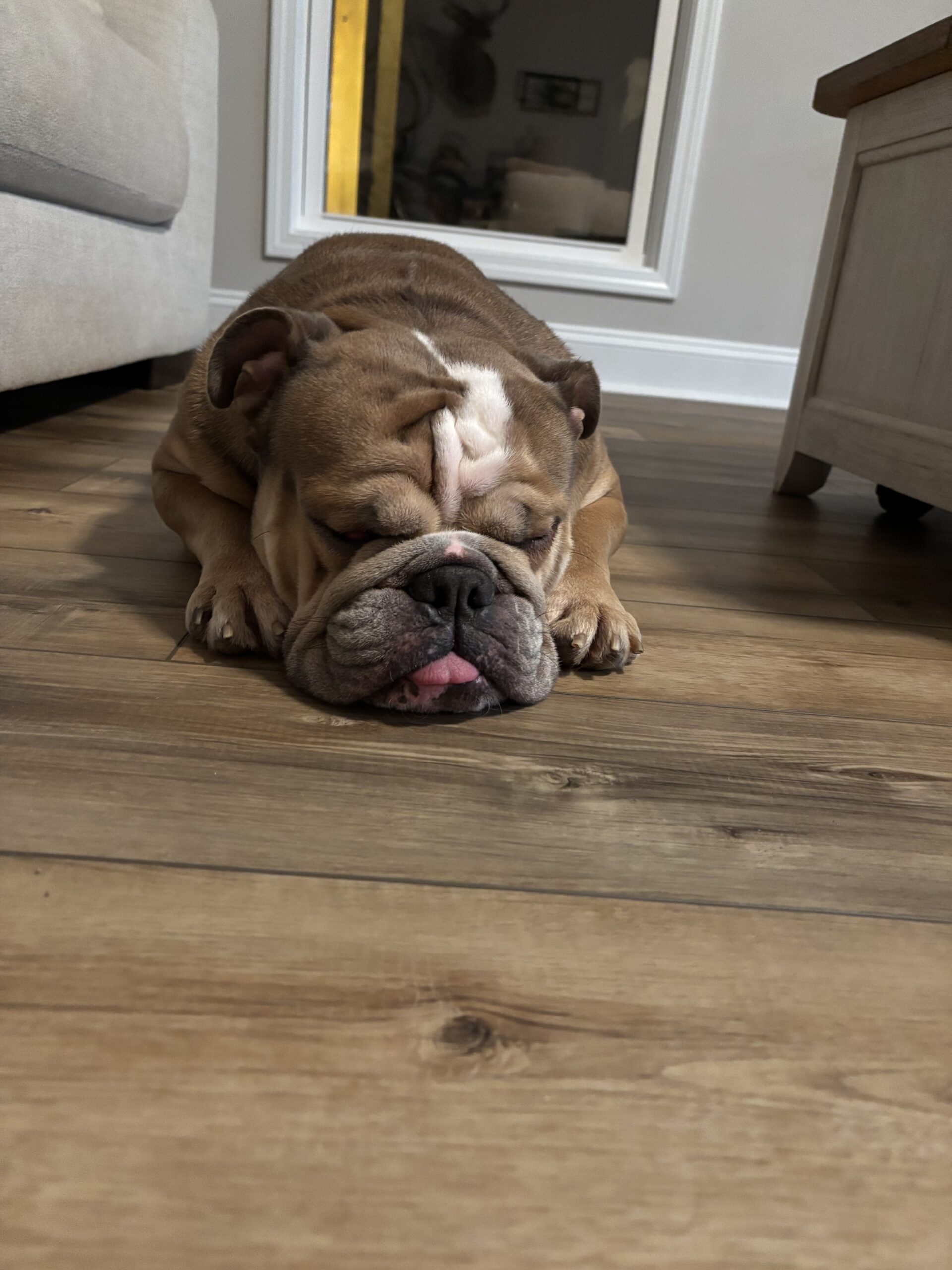 He prefers sleeping on the floor (beds optional), isn’t into toys yet, snores like a professional, and gives ALL the snuggles. Luke is a loving, loyal work-in-progress who will thrive with patience, structure, and someone who appreciates a big-hearted bully learning how to be a family dog.