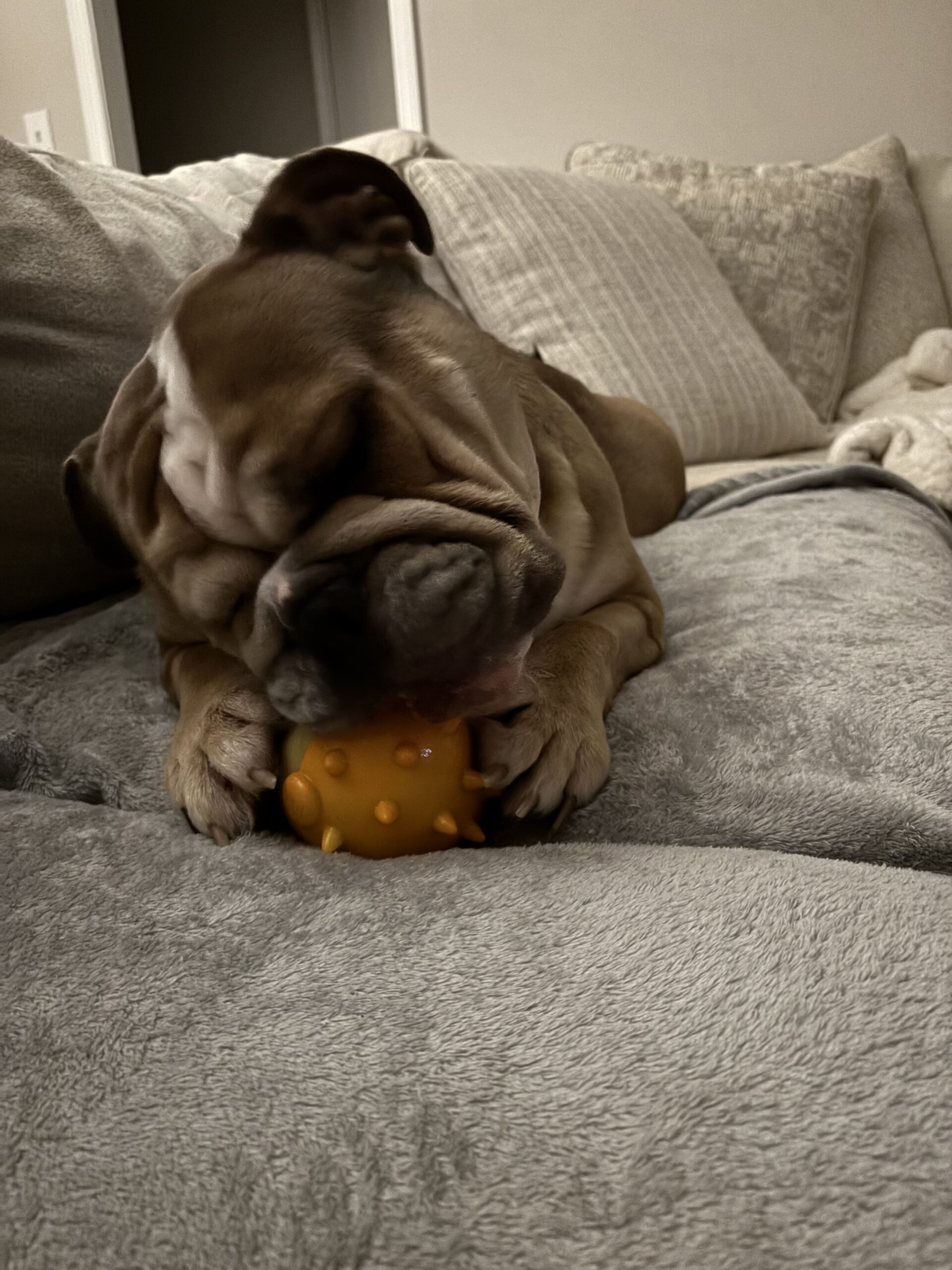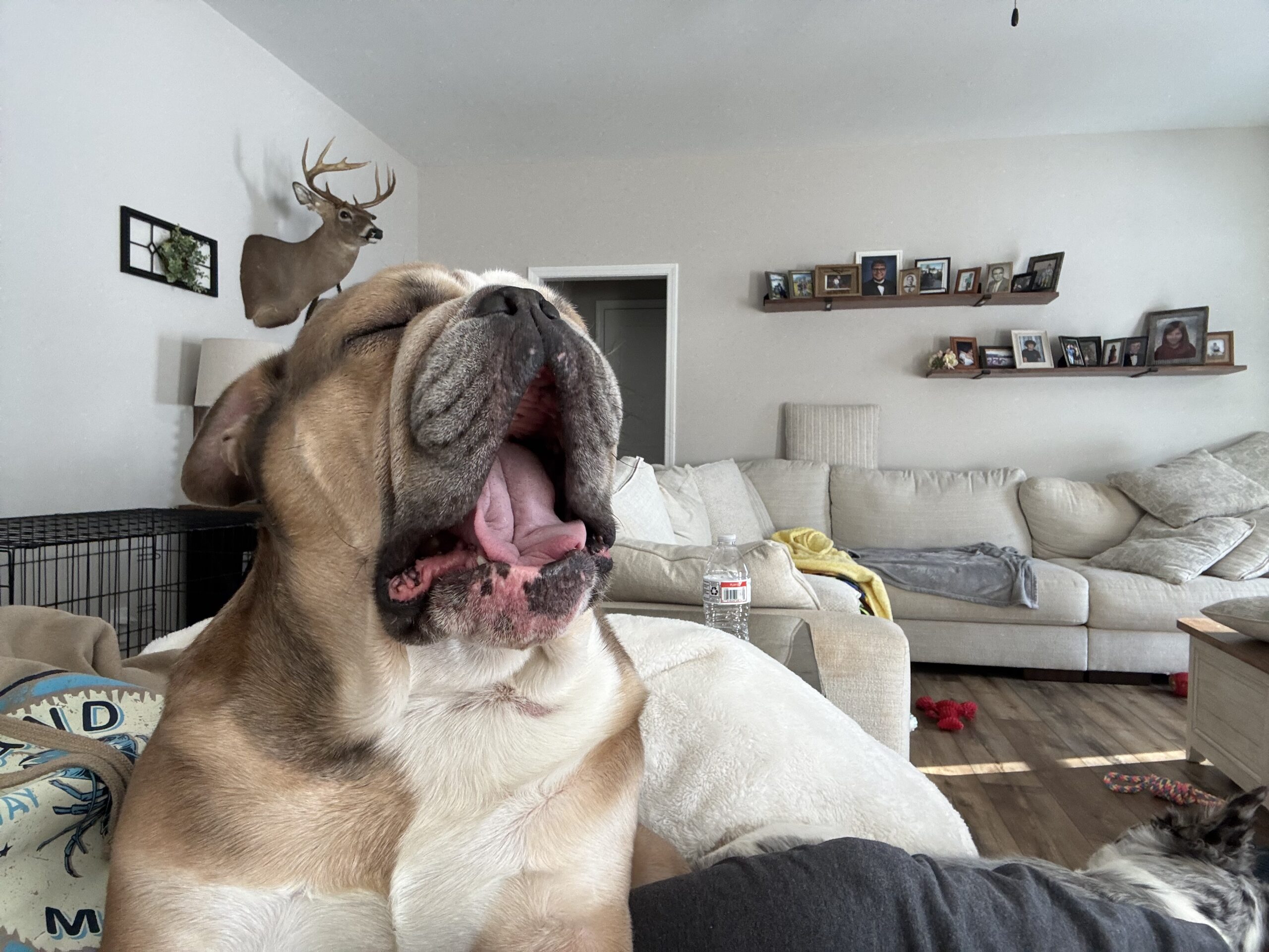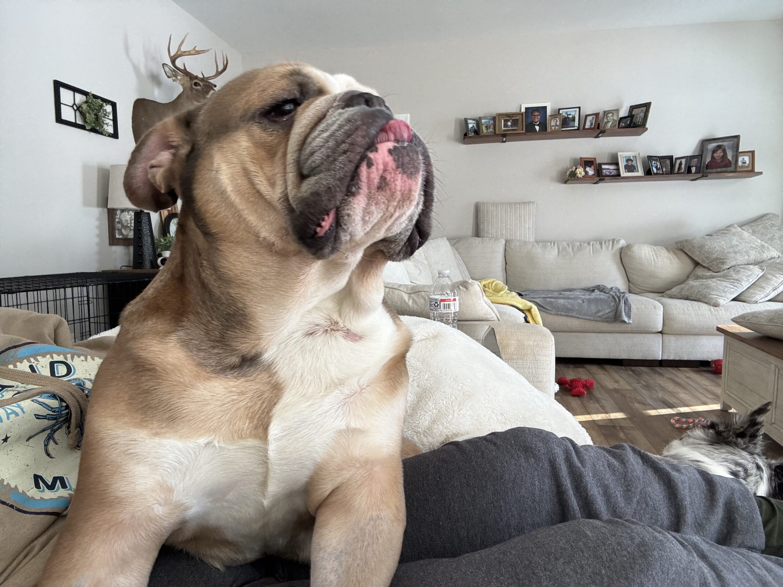 Luke is dog-tolerant with guidance and still learning manners after life as a former stud—he does mount and has a few quirky habits we’re hopeful will improve after his upcoming neuter and cherry eye repair. He’s never shown aggression, has never barked or growled, and startles easily with loud noises, showing his softer side.
