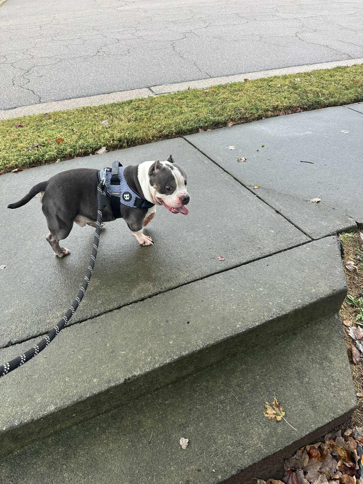 He’s a happy, energetic boy who loves people, walks, and being close to his humans. He’s crate trained, loves snuggling, and has a signature round gray “kiss mark” on top of his head that makes him instantly recognizable (and very kissable).