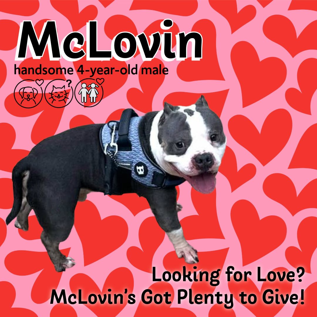 This handsome 4-year-old bulldog has been through a lot, but his heart is wide open and ready for a fresh start. After losing his owner and spending too much time in a crate, he’s rediscovering what it means to stretch, play, and be loved. Now neutered, healthy, and building muscle with daily walks, McLovin is soaking up every ounce of freedom and attention.