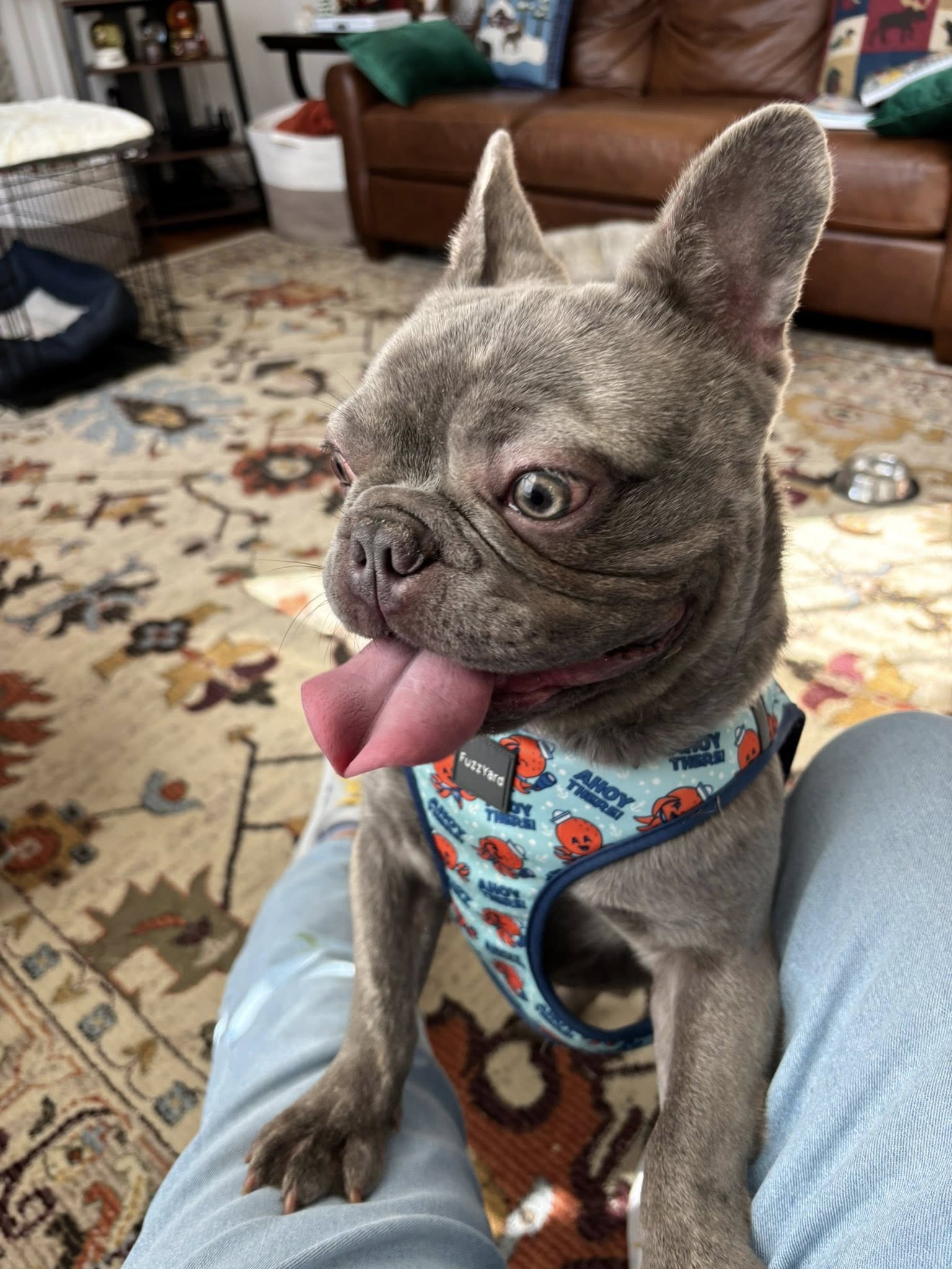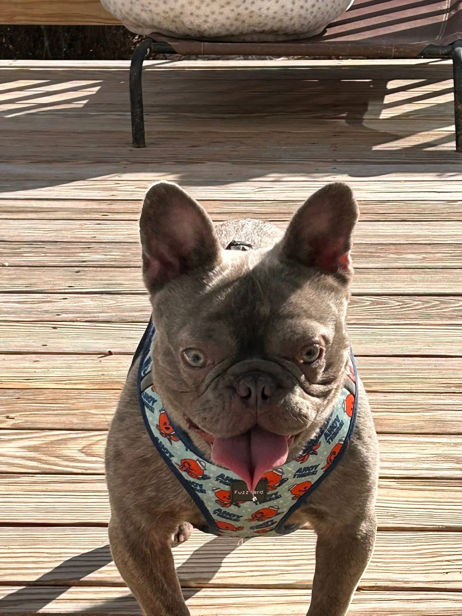 Ozzy isn’t a full-time snuggler yet, but he likes being near his people and keeping tabs on the action. He’ll thrive in an active home with a fenced yard, no stairs, and humans who appreciate a bold, goofy spirit with tons of potential.
